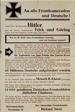 Stern se nacističkoj politici odlučio aktivno suprotstaviti. Napisao je i otisnuo letak koji je dijelio s ulaza svoje trgovine.