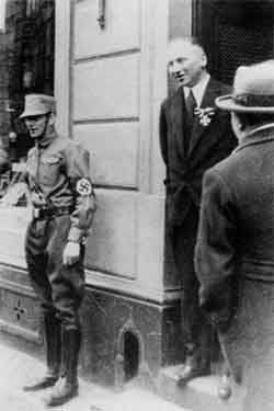 Fotografija vlasnika trgovine koji stoji na ulazu uz smeđekošuljaša ne bi bila pretjerano zanimljiva bez dodatnog povijesnog konteksta. Vlasnik trgovine je bio Richard Stern, njemački veteran koji je za zasluge nagrađen medaljom Željezni križ, simbolom časti, lojalnosti i žrtve, koju ponosno ističe na odijelu. Stern je ponosno isticao pripadnost njemačkome narodu i službi državi tijekom Prvoga svjetskog rata. No, fotografija je nastala 1. travnja 1933. godine u Kölnu, u vrijeme kad su nacisti dolaskom na vlast počeli realizirati antisemitski plan. Stražar je trebao odvratiti kupce od ulaska u židovsku trgovinu.