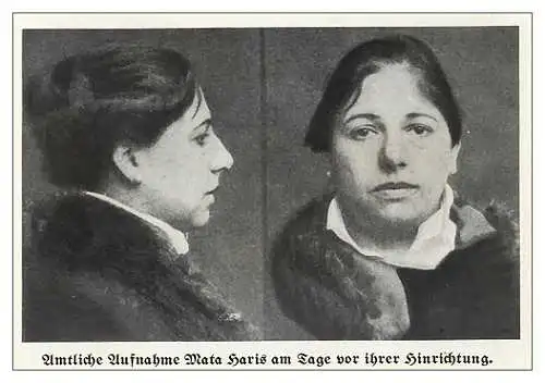 Mata Hari je pogubljena 15. listopada 1917. godine u 6:15 sati u Vincennesu pokraj Pariza. Streljanje nije fotografirano, ali u nekim izvorima postoji fotografija koja prikazuje Mata Hari ispred streljačkog voda. Ta je snimke prema pretpostavci montirana prilikom snimanja igranoga filma 1920. godine.