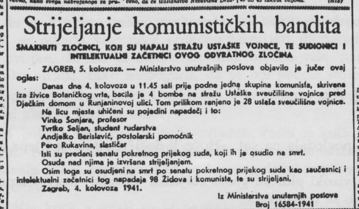 Ova akcija imala je snažan simbolički značaj jer je u to vrijeme otvoreni otpor bio iznimno rizičan. Ustaški režim je već u prvim mjesecima svoje vlasti uspostavio sustav brutalne represije, a nakon napada kod Botaničkog vrta uslijedila je oštra odmazda. Uhićen je velik broj osoba osumnjičenih za povezanost s Komunističkom partijom i pokretom otpora. Mnogi od njih bili su zatvoreni, mučeni, a dio ih je pogubljen. Najteže posljedice osjetili su članovi zagrebačke komunističke organizacije, koja je doživjela veliki udarac.